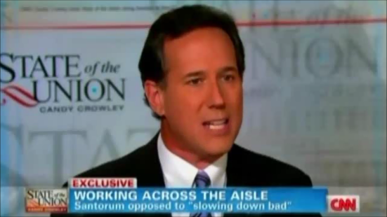 Appearing on State of the Union, Santorum correctly informed his host that the kind of Republican she wants in office "means doing what the other side wants only doing it slower instead of doing what is necessary for this country" (video follows with transcribed highlights and commentary):