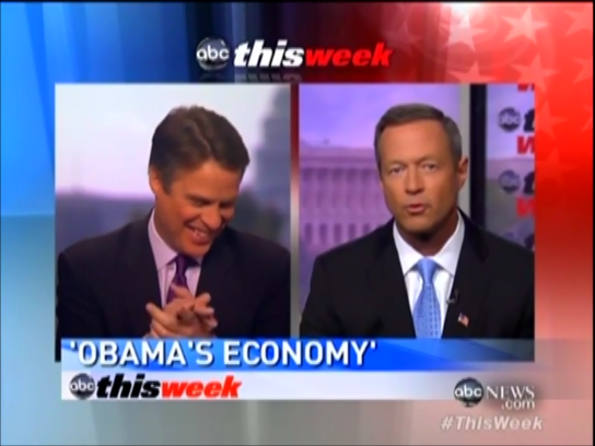 When the Nightline host filling in for This Week’s vacationing George Stephanopoulos realized he was on camera, he tempered his glee and put on a more serious face (video follows with transcript and commentary):
