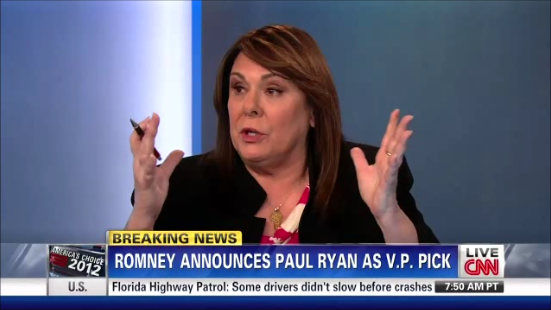 *****Update: The second paragraph of an earlier version of this piece read, "Doing her part Saturday was CNN's Candy Crowley who said that this 'looks a little bit like some sort of ticket death wish.'" Also, the original title was, "CNN's Candy Crowley: Ryan Pick 'Looks a Little Bit Like Some Sort of Ticket Death Wish.'"