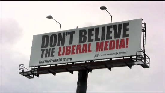 To welcome guests to the Republican National Convention, the Media Research Center placed a "Don't Believe the Liberal Media" billboard outside the Tampa airport last week.