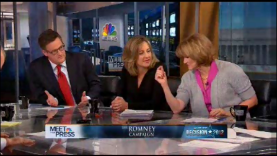 Bay Buchanan, one of Republican presidential candidate Mitt Romney's senior advisers, got into quite a heated exchange with MSNBC's Joe Scarborough on NBC's Meet the Press Sunday.