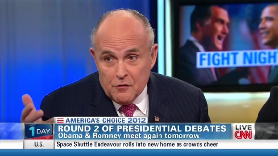 This was so apparent on Monday’s Starting Point that guest Rudy Giuliani, the former mayor of New York City, asked her, “Am I debating with the President's campaign?” (video follows with transcribed highlights and commentary):