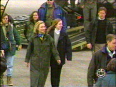ATTKISSON: Problem is, that's not what happened. And we should know. CBS News accompanied the first lady and daughter Chelsea on that Bosnia trip. That's Senator Clinton talking to me on the military flight into Tuzla, and these are the pictures we recorded of the greeting ceremony when the plane landed. Compare that to Senator Clinton's account.