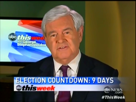 NEWT GINGRICH: The bigger issue is whether it’s unemployment or it is what’s happened in Benghazi where we’ve had this strange story over the weekend that the Secretary of Defense apparently refused to obey the President’s order if the President is telling the truth and he actually instructed his assistants to get aid to Benghazi. We’re now being told that the Secretary of Defense canceled that. And I think these kinds of things all drag down the Obama campaign.