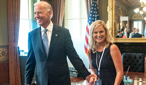 Apparently, Biden has been part of a running gag on the show. Poehler's character is a hard-core Democrat that idolizes Biden.