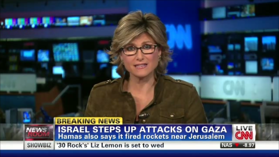 On CNN Newsroom Friday, Ashleigh Banfield actually said, "Rockets fired at Jerusalem. It is not the capital at this point, but it is the disputed center of the universe so to speak when it comes to Israel" (video follows with transcript and commentary):