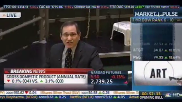 Rick Santelli made a stunning observation Wednesday about the shocking report that the economy actually shrunk in the fourth quarter last year.
