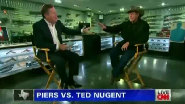 CNN's resident gun control advocate Piers Morgan faced off with Ted Nugent Monday, and as was expected, the bullets were flying.