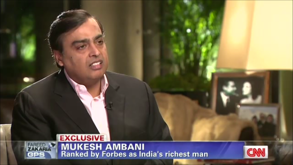 FAREED ZAKARIA, HOST: Mukesh Ambani hasn't given a television interview in almost a decade. He has never let TV cameras into his 27-story home in Mumbai. Until now. Ambani is the richest man in India, the second richest man in all of Asia. He is the chairman of India’s largest company, Reliance Industries, which his father started in 1980 making textiles. Today their revenues come mostly from energy, though they are making big bets in retail and telecommunications as well.