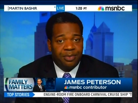 On the Martin Bashir show Monday, the host introduced Lehigh Professor James Peterson as a new MSNBC contributor, and virtually the first words out of Peterson's mouth were, "structural racism," "structural inequality," and "an over-aggressive criminal justice system that is racially biased" (video follows with transcript and commentary):