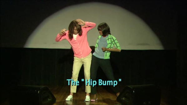 He was then joined by the first lady, and they proceeded to do a variety of dances including the "Go Shopping and Get Groceries," the "Raise the Roof," and then the "Hip Bump," or what was called during the disco era simply "The Bump."