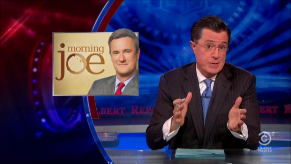 In the midst of a segment pushing his sister's candidacy for an open House seat in South Carolina, Comedy Central's Stephen Colbert took some shots at MSNBC's Morning Joe.