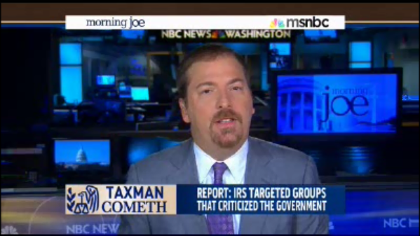 After former NBC Nightly News anchor Tom Brokaw excoriated the administration on MSNBC's Morning Joe Monday for using the Internal Revenue Service to intimidate political opponents, NBC's chief White House correspondent Chuck Todd said, "This story has more legs politically in 2014 than Benghazi" (video follows with transcript and commentary):