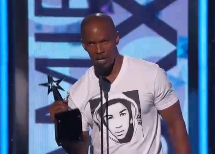 Jamie Foxx wore a Trayvon Martin shirt to the BET Awards Sunday evening.