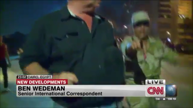 CNN senior international correspondent Ben Wedeman had a rather shocking thing happen to him while logging a live report from near Cairo's Tahrir Square Friday.