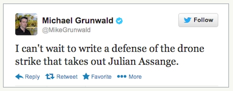 Michael Grunwald, TIME magazine's senior national correspondent, called for the United States government to assassinate Julian Assange with a drone strike Saturday.