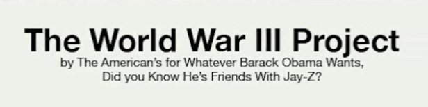 “That’s why we here at the ‘Americans for Whatever Barack Obama Wants, Did You Know He’s Friends With Jay-Z?’ have launched a Kickstarter campaign to fund World War III.”