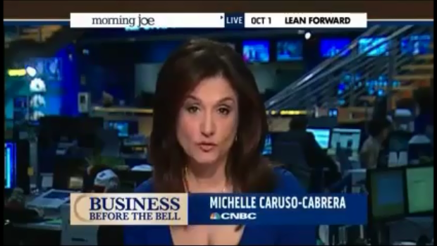 After he was done, CNBC’s Michelle Caruso-Cabrera told the MJ crew about how the markets were shrugging off the shutdown due to its likely limited impact on the economy and punctuated her thoughts by saying, “Jay Carney’s been fear mongering on your network” (video follows with transcript and commentary):