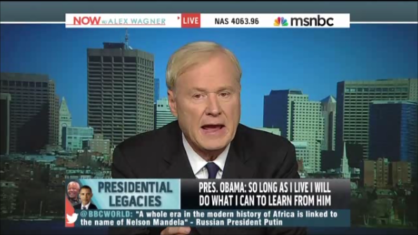 Apparently not, for on Now with Alex Wagner Friday, Chris Matthews actually said that South Africa's last apartheid era leader F.W. de Klerk was more of a patriot than Senate Minority Leader Mitch McConnell (R-Ky.) (video follows with transcript and commentary):