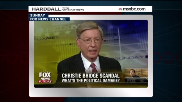 Obviously doing his part Monday was MSNBC’s Chris Matthews who selectively edited comments George Will made on Fox News Sunday to make it appear that the syndicated columnist was actually comparing Bridgegate to Watergate (multipart video follows with transcripts and commentary):