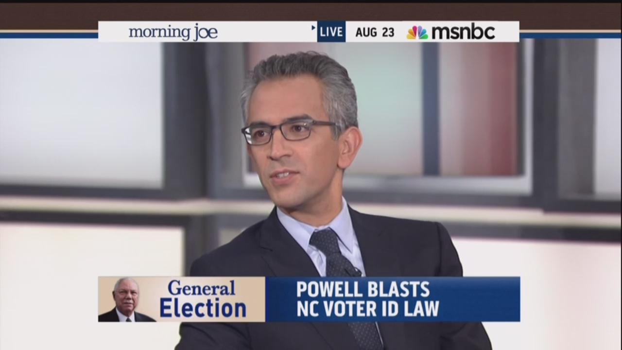 RICHARD WOLFFE: Can I just say, by the way, Colin Powell is a national treasure. He is. You know, he is. He doesn't have to do any of this. He's getting paid on the speaking circuit. He could just glide through it. He doesn't have anything to prove and he speaks out on these issues of principles. And this is a fundamental American principle -- people should vote. Participation is key. No matter whether you're Republican or Democrat. So I -- you've got to salute him with respect, really.