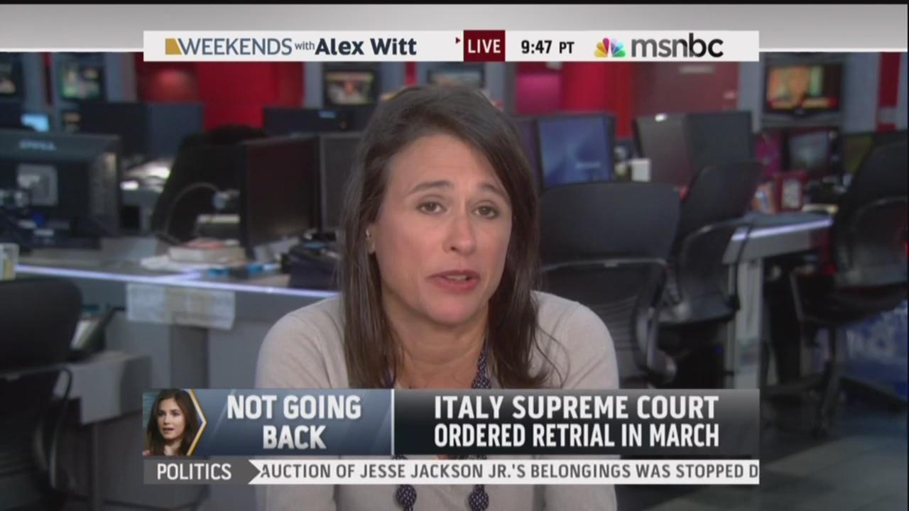 NINA BURLEIGH: No, it's an appellate decision that basically – they're just going to retry the trial. And there is no new evidence. I think that the supreme court over there just decided, you know, there are millions and million of Italians and Americans who still think that these two kids are guilty. And I think they wanted to take the case out of Perugia and put it into Florence. And if I were the two of them – I mean, Sollecito, the boyfriend, is hiding out in the Caribbean apparently. I mean, it just goes on and on. I wouldn't go back there because their system is such that they can put them into jail again right away and hold them. And so you know, why would you go back? Maybe we should send Cantor or Boehner over there to sit in for her. That would solve a lot of our problems.