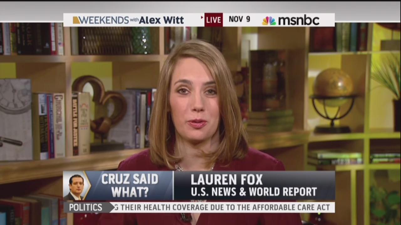 Witt asked Lauren Fox of U.S. News & World Report for her take on that comment. The sly Fox twisted the meaning of Cruz’s words: “Well, I think what's interesting here is he's saying the biggest problem in Washington are those who are dug in on both sides.”