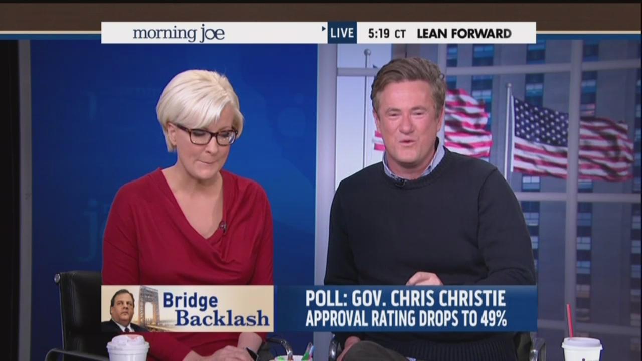 JOE SCARBOROUGH: So 45 percent, Martin O'Malley. So Chris Christie’s actually still more popular as a Republican in a Democratic state that went for Barack Obama by double digits after being hammered nonstop by people who have been obsessing in a very entertaining way over the past several months. He still has a higher approval rating than Martin O'Malley. And as a Wall Street Journal article pointed out this month, Connecticut's governor Dannel Malloy’s approval ratings have never been that high.