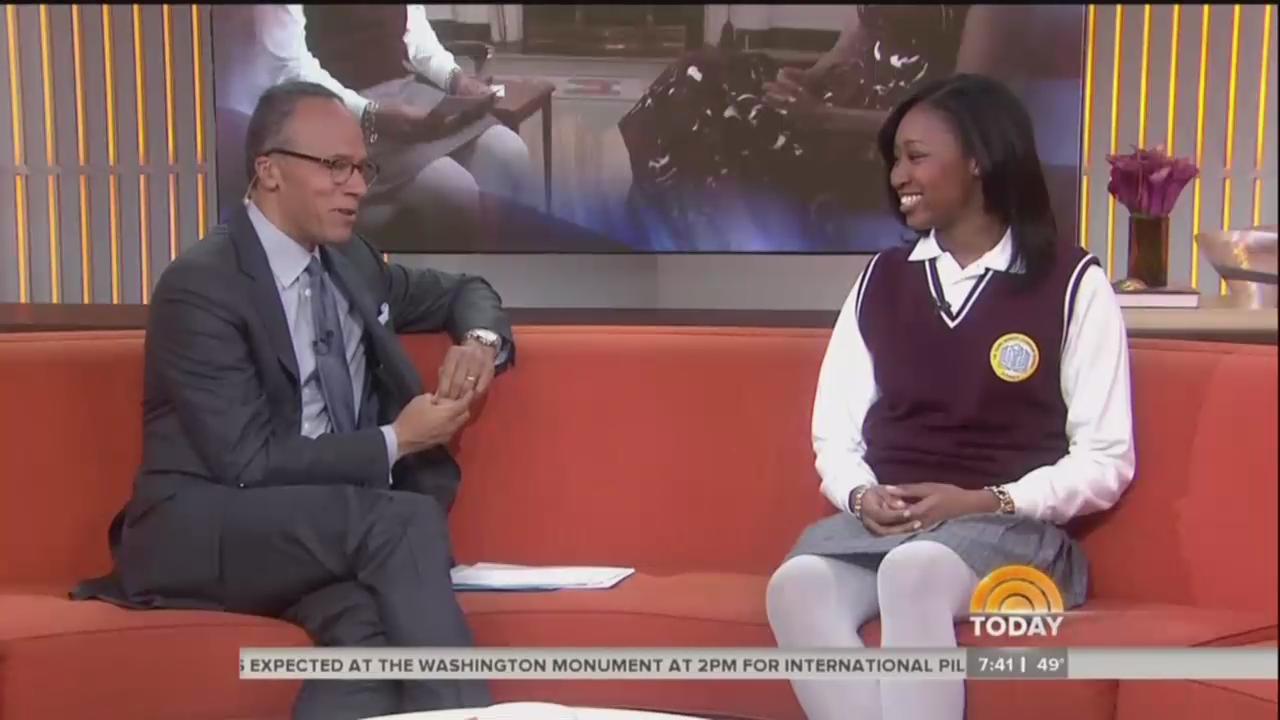 LESTER HOLT: Back now on a Saturday morning with the young woman who was recently handed a very big assignment – a chance to interview first lady Michelle Obama. Luckily, 18-year-old Nene Sy was up for the task. Nene is a senior at the Young Women’s Leadership School of East Harlem and her interview is going to be shown at the fifth annual Women in the World summit this morning here in New York City. Nene, good morning. Great to see you.