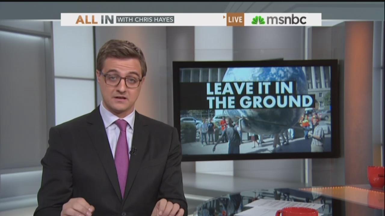 CHRIS HAYES: If we want to stay below that 2 degrees Celsius threshold, there's a limited amount of fossil fuel we can burn. I mean, we know more or less how much fossil fuel raises the temperature a certain amount. And the amount of carbon contained in the proven fossil fuel reserves on the planet right now that we can get out with current technology is 2,795 gigatons. And if we want to stay in that zone of not exceeding the global temperature increase of more than 2 degrees Celsius, we can only use one-fifth of it. 20 percent. That means 80 percent – 80 percent of the known fossil fuel reserves that are on the books that companies like BP and Exxon know about, along with oil-reliant nations like Saudi Arabia, 80 percent of it needs to stay in the ground. 80 percent of the fossil fuel needs to stay the ground.