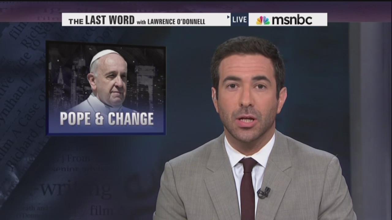 MELBER: Yeah, you mentioned the exhortation, and some will remember that, and that goes to what a modern pope he is. You know, Twitter can be used for photos, it can be used for nothing and piffle, or it can be used to revisit and broaden out more elaborate text. Let's read from the exhortation which was entitled "No to the Idolatry of Money," where he wrote, "While the earnings of a minority are growing exponentially, so too is the gap separating the majority from the prosperity enjoyed by those happy few. This imbalance is the result of ideologies which defend the absolute autonomy of the marketplace and financial speculation. Consequently they reject the right of states, charged with vigilance for the common good, to exercise any form of control. A new tyranny is thus born." Josh, there's a lot going on in there. Part of it, I think, reflects his status and world view and experience from being from, you know, a different type of country and an economy, as many people feel in the developing world that they don't even have any real meaningful control over their economic conditions when they're so dependent on the global economy.