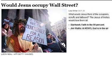 On Washington Post's On Faith blog, Daily Beast contributor Lisa Miller teased a piece about Occupy Wall Street with a worthy question: "What would Jesus think about Occupy Wall Street?" Her answer was simple, and predictably liberal: "The Jesus of history would love them all."