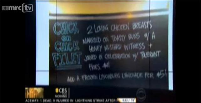 CBS has made no secret of its position on the manufactured Chick-fil-A controversy. They buried coverage of Chick-fil-A Appreciation Day on August 1, waiting until the morning to cover the massive crowds supporting the embattled fast-food restaurant. But the giggling anchors highlighted a sandwich made to make a point about same-sex marriage. Perhaps the CBS anchors should try to do a better job keeping their bias regarding same-sex marriage hidden.