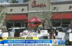 The only attention ABC gave to the kiss-in was a brief on the Aug. 4 edition of “Good Morning America.” Ron Claiborne reported: “And hundreds of people across the country turned out for the latest round in the culture war sparked by the Chick-fil-A restaurant chain. Gay rights advocates staged a kiss-in on Friday, snapping photos of themselves kissing in front of the restaurant. This came a couple of days after people packed the fast-food chain showing support for the company's president's anti-gay marriage stance.”