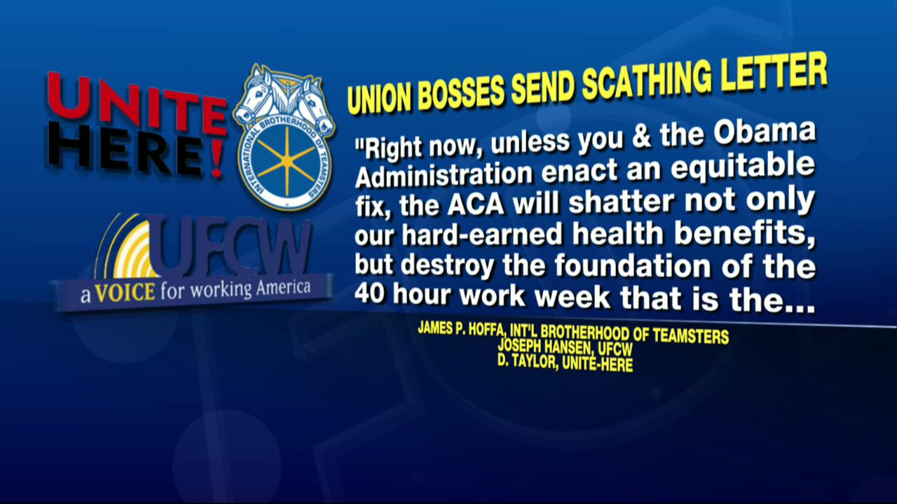 Last week's open letter comes from James Hoffa (the Teamsters), Joseph Hansen (United Food and Commercial Workers International) and Donald Taylor (Unite-Here, a hotel and other services union). All three, who together represent three million workers, acknowledge they were once "strong supporters" of the Affordable Care Act but now lament the law's "perverse incentives" that "are already creating nightmare scenarios."