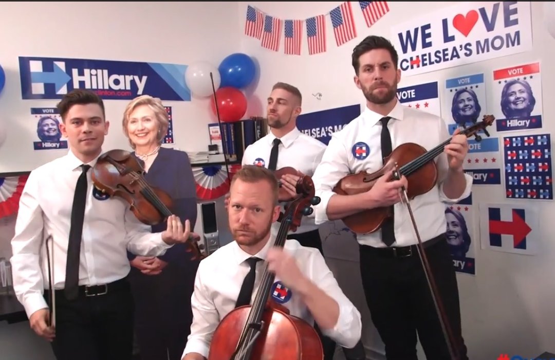 What happens when a string quartet composed of four 20 and 30-something males who have only known adult life with Hillary Clinton in political office want to support the now-presidential candidate?
