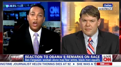 Reacting to the Obama speech on Lemon's program, Ferguson, a Dallas radio talk show host, used that statement to accuse the president of stereotyping all white women as profiling black men.