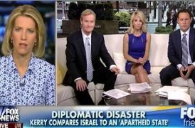 During Tuesday morning's edition of the Fox & Friends program, conservative radio host Laura Ingraham hammered the lack of political fallout over secretary of state John Kerry's remarks that Israel could become an “apartheid” state if that nation doesn't adopt “a two-state solution” to achieve peace with their Palestinian neighbors.