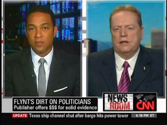 CNN’s Don Lemon hosted pornographer Larry Flynt on Sunday’s Newsroom, ostensibly to talk about an upcoming Supreme Court case in which the 1988 case of Hustler Magazine v. Falwell is being cited as a precedent. But Lemon quickly turned to politics, asking the Hustler publisher to regurgitate tawdry details of Republican Senator David Vitter’s prostitution scandal (as if CNN wasn’t in the process of actively rehabilitating a Democratic politician caught in a similar scandal) and begging Flynt to reveal “tips” and “hints” about other politicians who might be exposed.