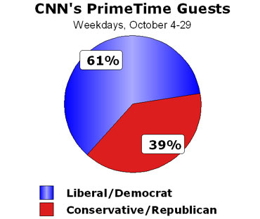 So, did CNN “play favorites” during the midterm campaign? MRC analysts reviewed all of the guests and commentators on CNN’s primetime weekday programs from October 4 through October 29, the last four full weeks before the November 2 elections. Guests were grouped into three categories: “Democrat/liberal,” “Republican/conservative,” and “Other.” The latter category included all non-political guests, as well as guests who were not associated with a clear political point of view.
