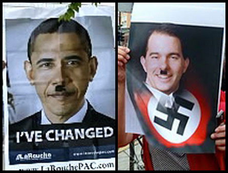 Last March, as thousands protested on Capitol Hill in the days before the passage of ObamaCare, CBS’s Nancy Cordes slammed it as “a weekend filled with incivility,” while World News anchor Diane Sawyer painted the Tea Party as a violent gang, with “protesters roaming Washington, some of them increasingly emotional, yelling slurs and epithets.” In August 2009, ABC anchor Charles Gibson complained how “protesters brought pictures of President Obama with a Hitler-style mustache to a town hall meeting,” failing to mention that the signs were produced by Lyndon LaRouche’s wacky fringe movement, not the Tea Party or conservatives.