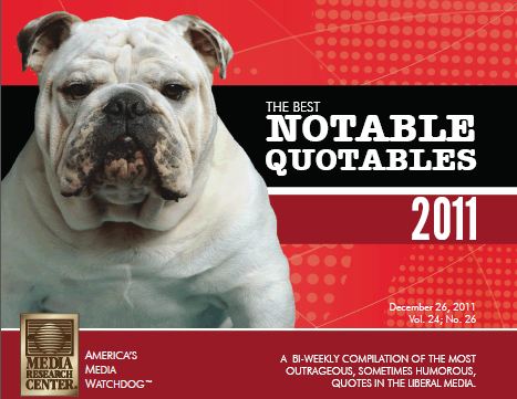 It's always interesting to see how the several thousand readers who voted in the MRC's "public ballot" differed from the 48 media experts who selected our Best Notable Quotables of 2011 (a panel which included talk radio hosts Mark Levin and Neal Boortz, Human Events editor-in-chief Tom Winter and Boston Globe columnist Jeff Jacoby). This year, there were six categories where our readers and the judges disagreed -- although sometimes the margins were extremely close.