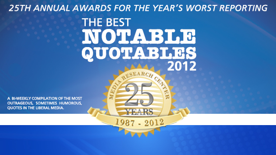 It's the last day of 2012, and NewsBusters is recounting the worst media bias of the year, as catalogued in the MRC's Best Notable Quotables of 2012.