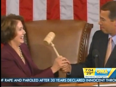 On January 5 of that year, reporter Claire Shipman hyped, "You could actually feel the history of the moment, especially in an era of such partisan politics, when Nancy Pelosi received a standing ovation not just from the Democrats, but from Republicans too. She has barely started her job but her election is already having an impact on a lot of Americans."