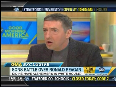 Guest co-host Elizabeth Vargas teased the segment by proclaiming, "Coming up in just a moment, new revelations about President Reagan and when he developed Alzheimer's." Wouldn't "allegations" have been the fair way to describe the claims of Ronald Reagan's liberal son?