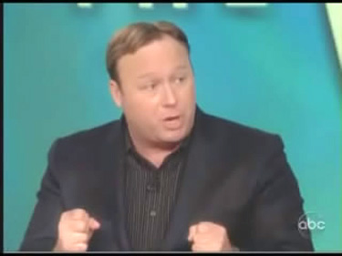 Alex Jones, a 9/11 truther and promoter of other conspiracy theories, appeared on ABC's The View Monday to defend his friend Charlie Sheen, but diverted the interview into slamming George W. Bush for turning American into "a police state." Veteran journalist Barbara Walters did not denounce the radio host when he referenced the theory that the government was behind the 9/11 terrorist attacks.