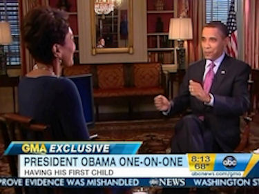 By this time four years ago, during the 2008 presidential campaign, GMA had given Democratic candidates (Hillary Clinton and John Edwards) 64 minutes in special town hall shows. They offered none for Republicans. Now, four years later, no Republicans have received a town hall and Barack Obama is the subject of a lengthy, fawning Father's Day interview.