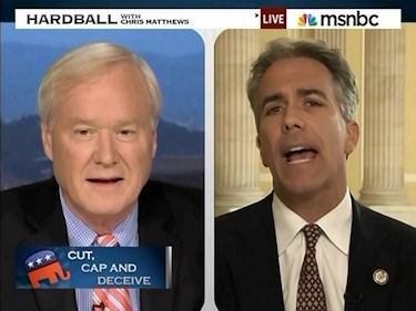 Walsh appeared to discuss the debt ceiling debate and what Republicans are willing to cut. The Congressman jokingly referred to Matthews' famous 2008 remark that an Obama speech created a "thrill going up my leg." A seemingly chagrined Matthews dismissed, "Okay. Here we go. This is where I thought we'd end up."