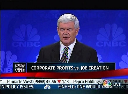 GINGRICH: I love humor disguised as a question. That's terrific. I have yet to hear a single reporter ask a single Occupy Wall Street person a single rational question about the economy that would lead them to say, for example, "Who is going to pay for the park you are occupying if there are no businesses making a profit?"