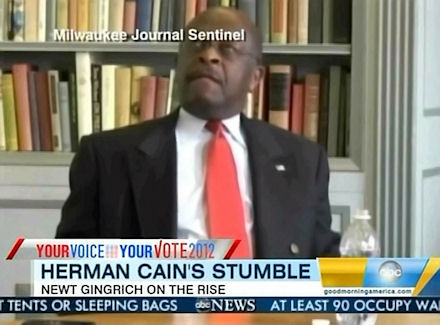 Good Morning America's John Berman on Tuesday played a clip of Cain struggling to answer a question about Libya and how he would have handled the uprising there. Berman gloated, "You know, just when you thought you've seen the last epic video moment of this campaign. Herman Cain is taking his turn on the highlight or lowlight reels."
